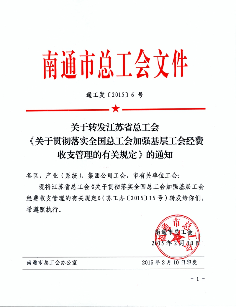附件:1.《中华全国总工会办公厅关于加强基层工会经费收支管理的通知》(总工办发〔2014〕23号)