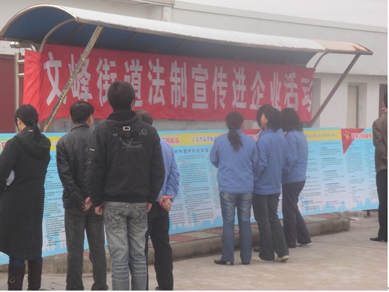 4、工会工作人员向职工宣传《劳动法》,《中华人民共和国妇女权益保障法》。